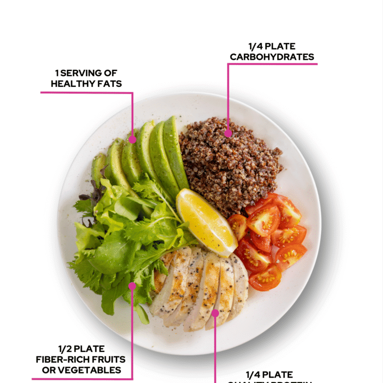 If you’re following current nutrition trends, you’ve probably heard that protein and fiber are the most important components of a meal. While both are important, focusing only on these two nutrients means you’re missing out on two other critical components!